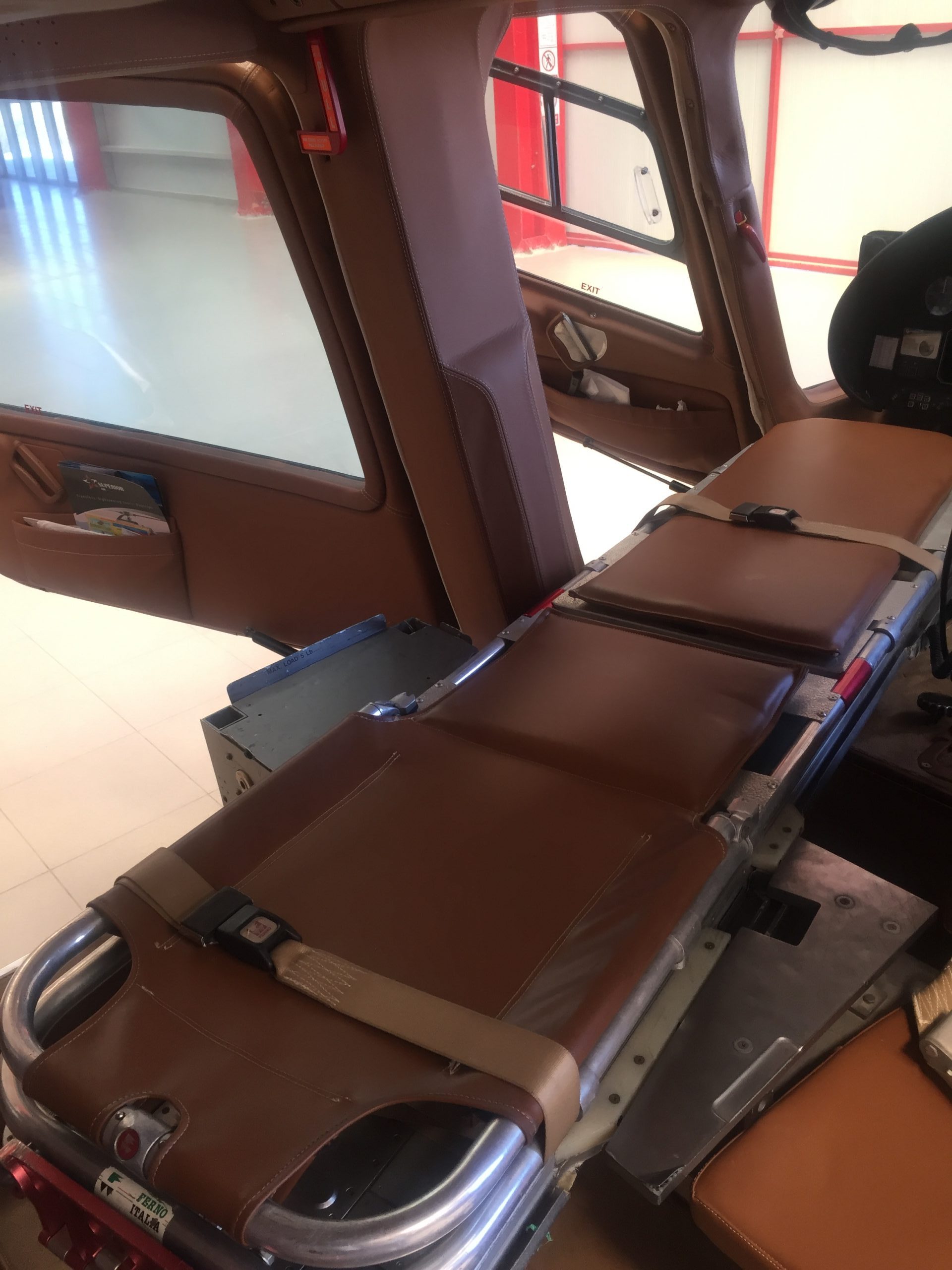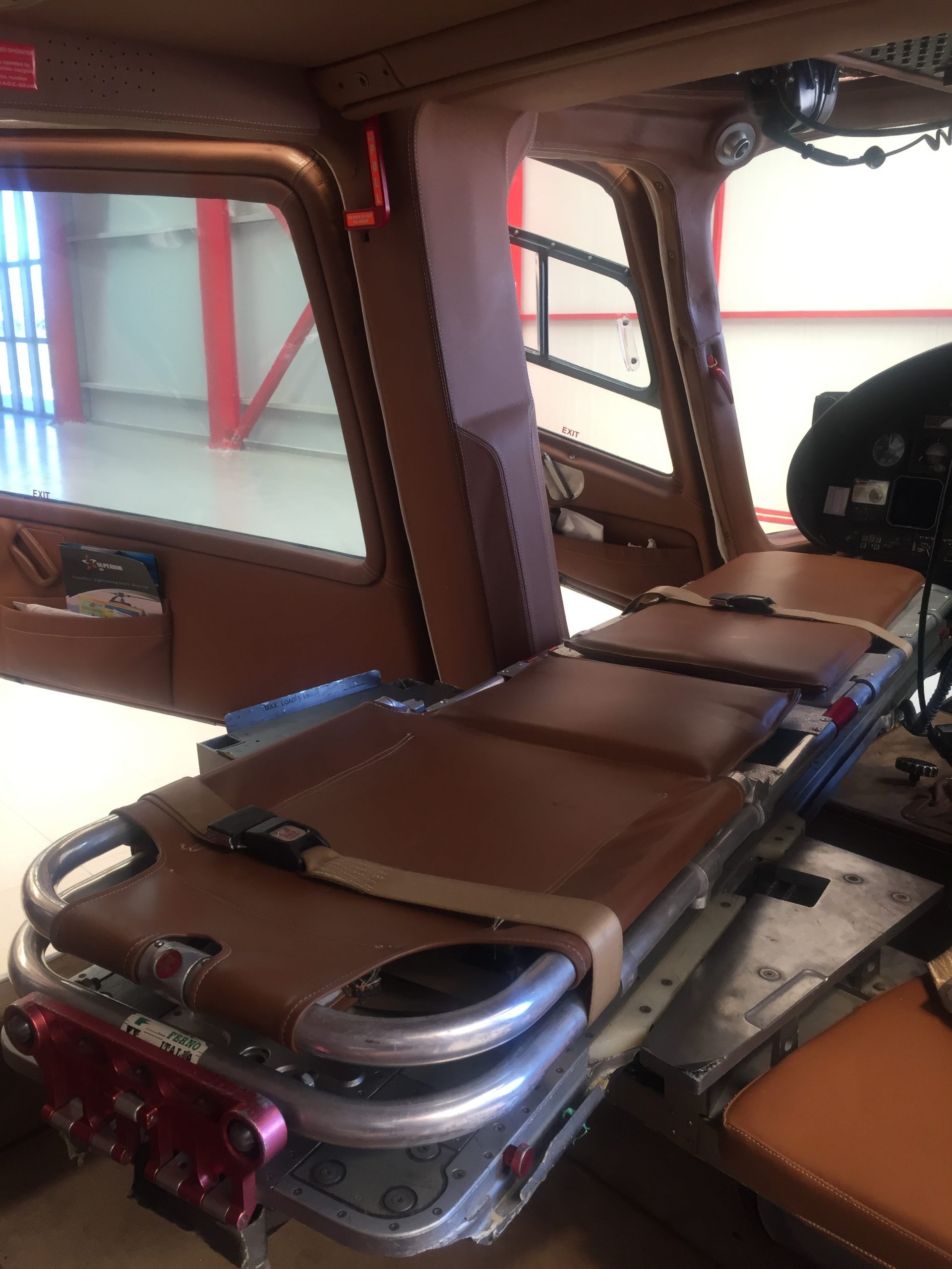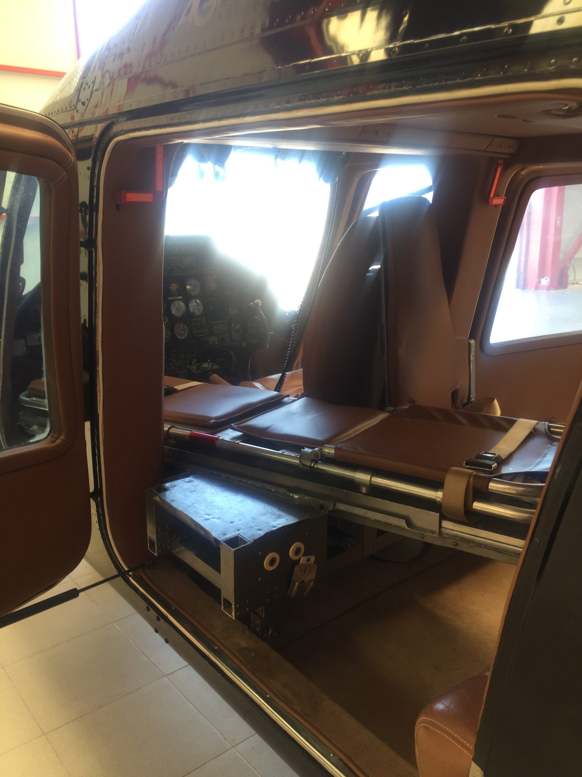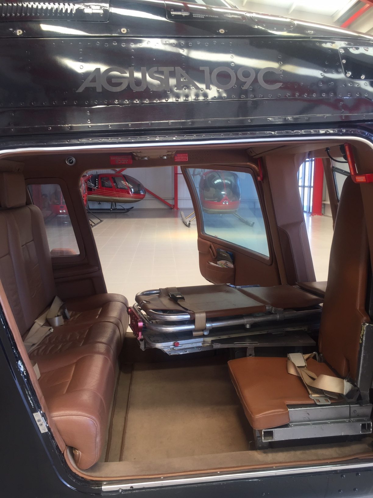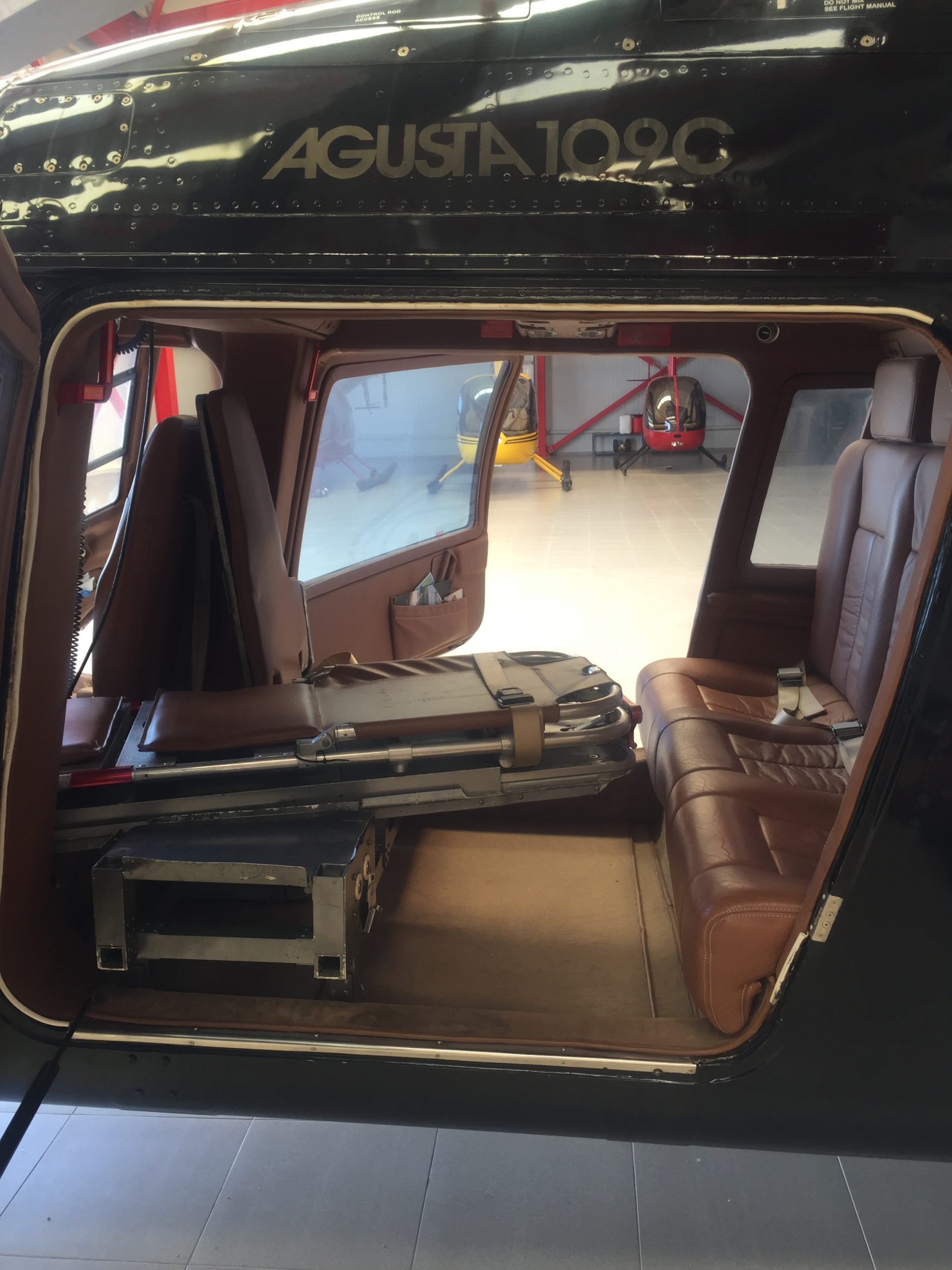 Our A109C twin-engine helicopter is factory equipped with a stretcher for aeromedical flights.